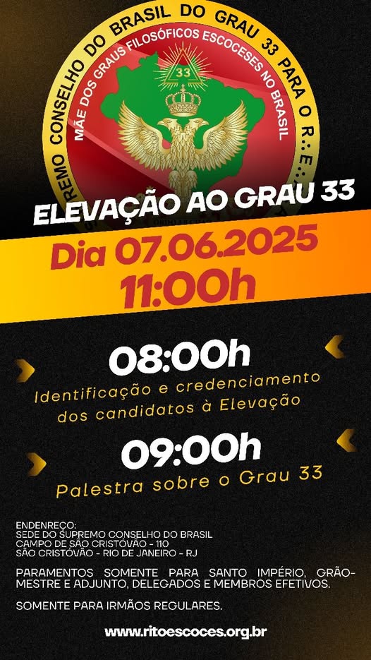 SESSÃO MAGNA DE ELEVAÇÃO AO GRAU 33 DELEGACIA LITÚRGICA DE CURITIBA 20.1 Com grande honra e entusiasmo, o Supremo Conselho do Brasil, Casa-Mãe dos Graus
